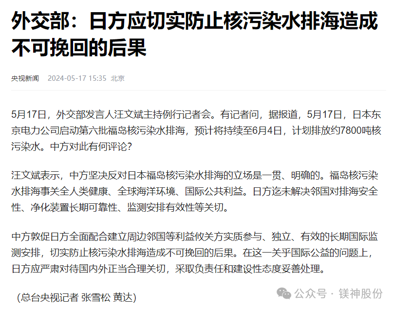 第七輪核污染水排海結束,日本鎂鹽隱藏的危機!