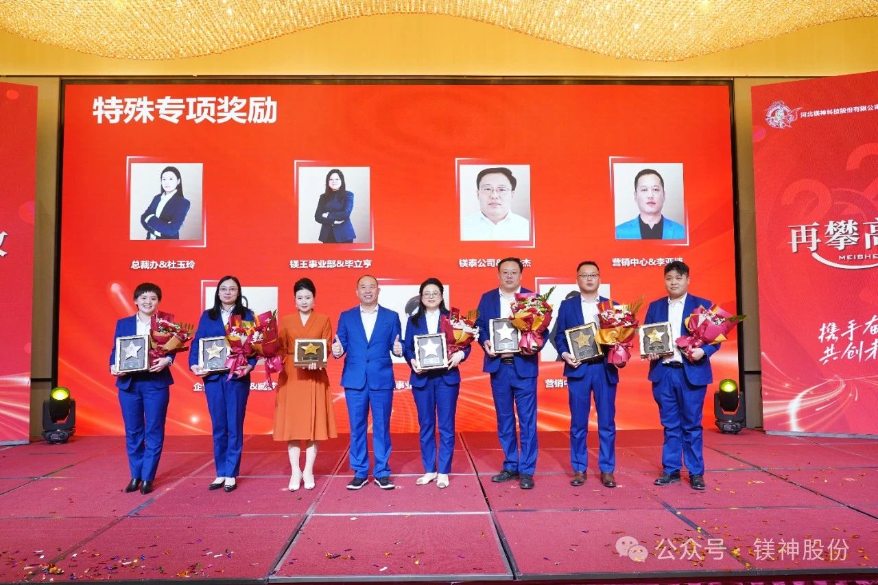 3月31日,河北鎂神科技股份有限公司2024年度總結暨表彰大會在邢臺市瑞爵酒店舉行,本次共發放獎金1227.88萬元!其中第四季度提成138.34萬元、銅級榮休紀念獎0.67萬元、私欠清零4.3萬元、評優評模76.8萬元、特殊貢獻獎18萬元、優秀團隊11萬元、專項獎金179.64萬元、職能中心年終獎72.84萬元、利潤中心分紅698.3萬元、扎根非洲、熱愛非洲、建設非洲獎28萬。